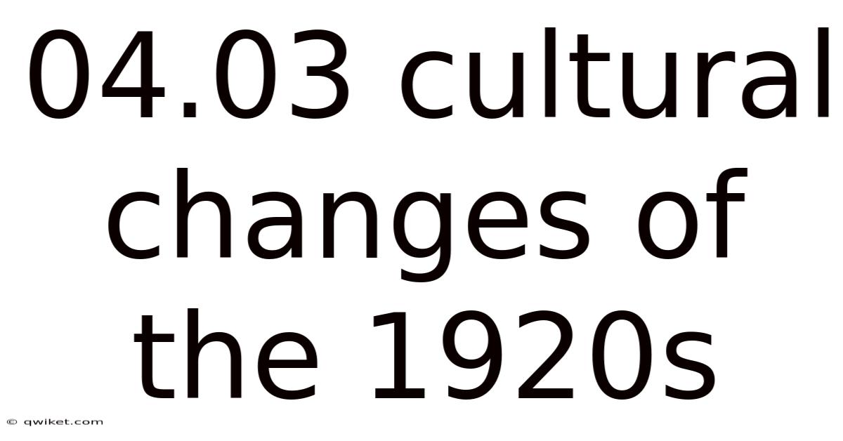 04.03 Cultural Changes Of The 1920s