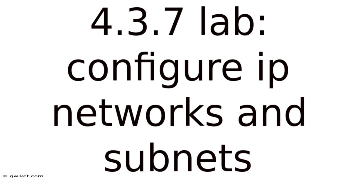 Understanding the intricacies of lab configurations for IP networks and subnets is essential for anyone aiming to master computer networking. This article digs into the detailed process of setting up IP networks and subnets, providing a complete walkthrough that is both informative and engaging. By exploring the key concepts and practical steps involved, we aim to equip readers with the knowledge needed to effectively manage and optimize their network environments Worth keeping that in mind..