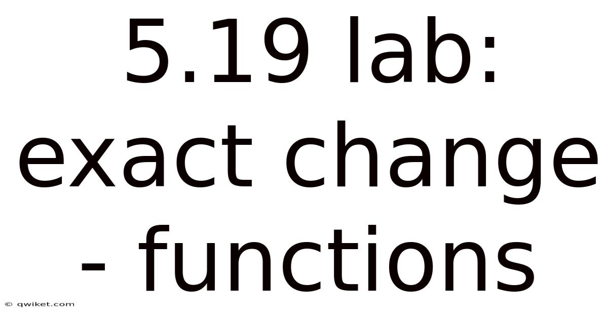 The 5.19 lab: exact change - functions challenges students to design reusable functions that compute the minimum number of coins required to make a given amount of money, reinforcing modular programming and algorithmic thinking while providing a concrete application of mathematical reasoning in code.