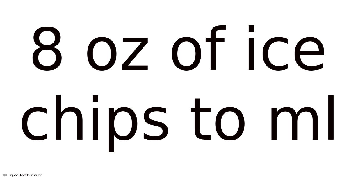 - 226.796 g ÷ 0.917 g/ml ≈ 247.3 ml Thus, 8 oz of ice chips occupy roughly 247 ml of volume. Rounding to the nearest whole number, you can safely use 247 ml in recipes or experiments that require precise volume measurements.