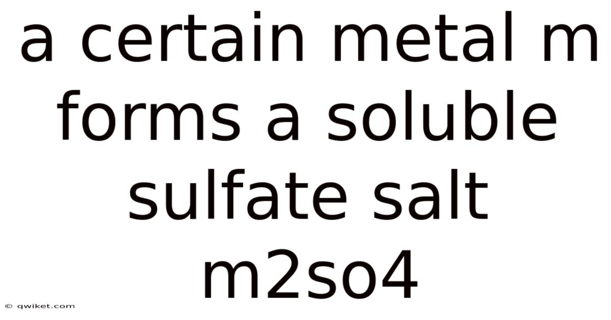 A certain metal m forms a soluble sulfate salt m₂SO₄, a compound that has a real impact in various industrial processes, analytical chemistry, and everyday applications. Understanding how this sulfate salt is produced, why it dissolves readily in water, and what properties make it valuable helps students, researchers, and professionals alike to harness its potential safely and efficiently. This article explores the chemistry behind m₂SO₄, outlines the typical laboratory and industrial steps for its synthesis, explains the underlying scientific principles, and answers common questions that arise when working with this versatile compound.