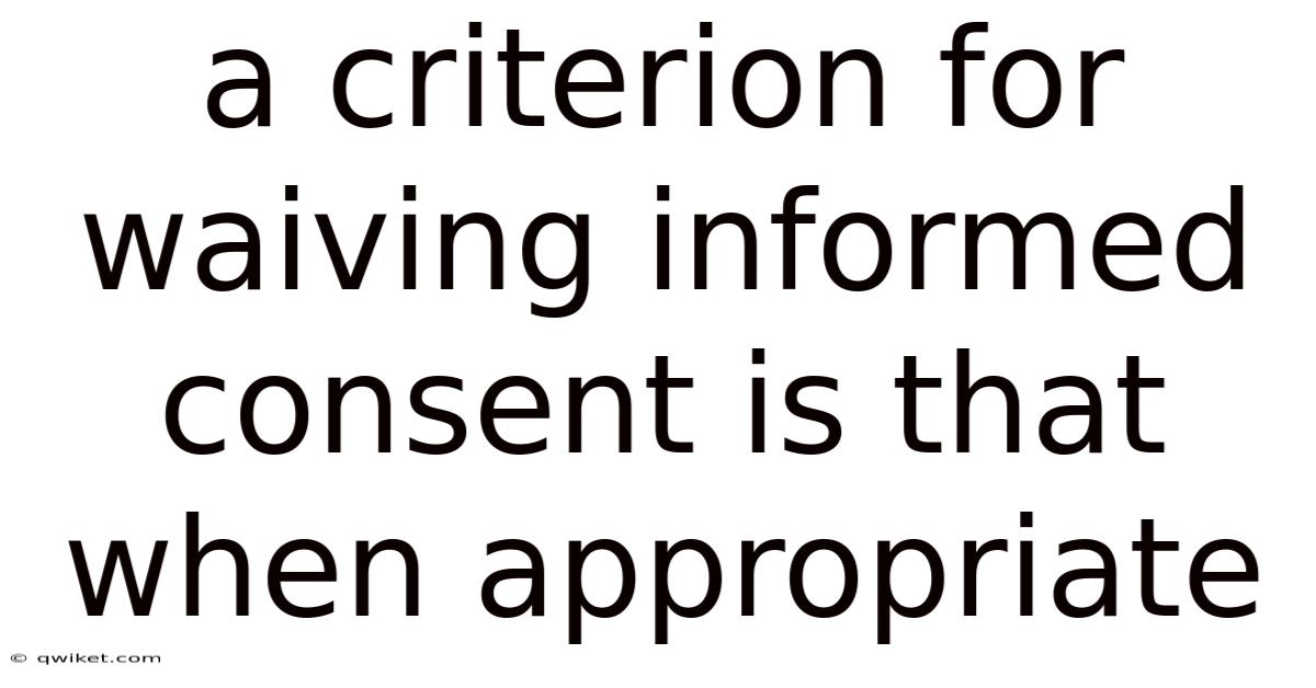 A Criterion For Waiving Informed Consent Is That When Appropriate