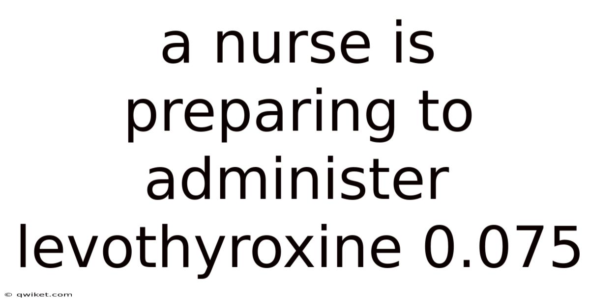 The administration of levothyroxine 0.Practically speaking, 075 mg is a routine yet vital task for nurses, particularly in managing patients with hypothyroidism. Consider this: this synthetic thyroid hormone replacement therapy is prescribed to restore normal thyroid function in individuals whose bodies do not produce sufficient thyroxine. For nurses, ensuring the correct dosage, proper administration technique, and patient education are essential to achieving therapeutic outcomes and minimizing risks. The process of preparing and administering levothyroxine 0.075 requires meticulous attention to detail, as even minor errors can impact a patient’s health. Still, understanding the medication’s purpose, the steps involved, and the scientific rationale behind its use empowers nurses to deliver safe and effective care. In real terms, this article explores the comprehensive process of administering levothyroxine 0. 075, highlighting the nurse’s responsibilities and the importance of precision in this critical task That's the part that actually makes a difference..
