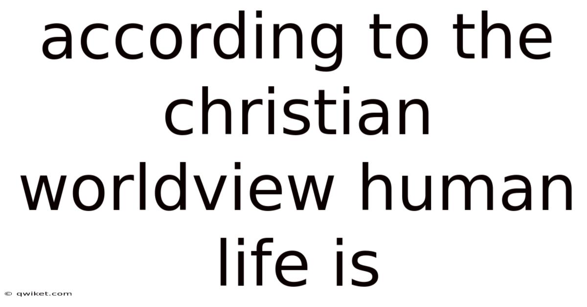 According To The Christian Worldview Human Life Is