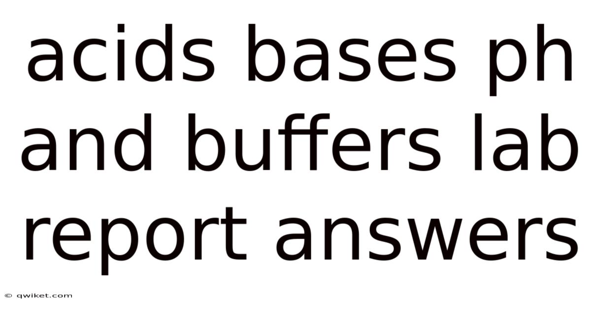 Acids, Bases, pH, and Buffers Lab Report Answers