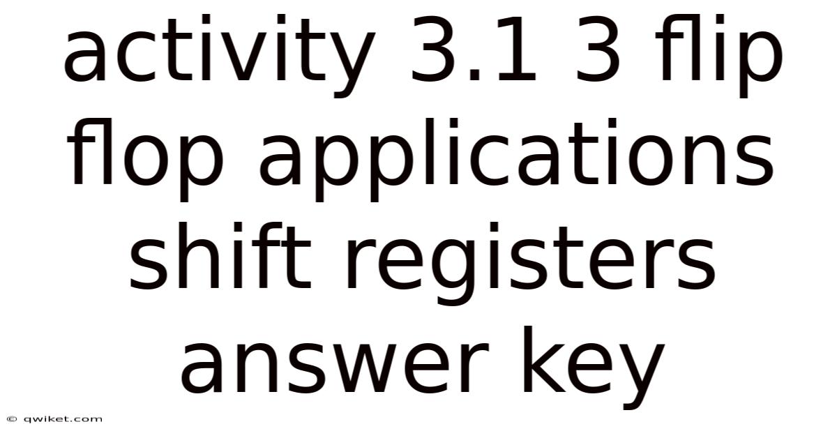 Activity 3.1 3 Flip Flop Applications Shift Registers Answer Key