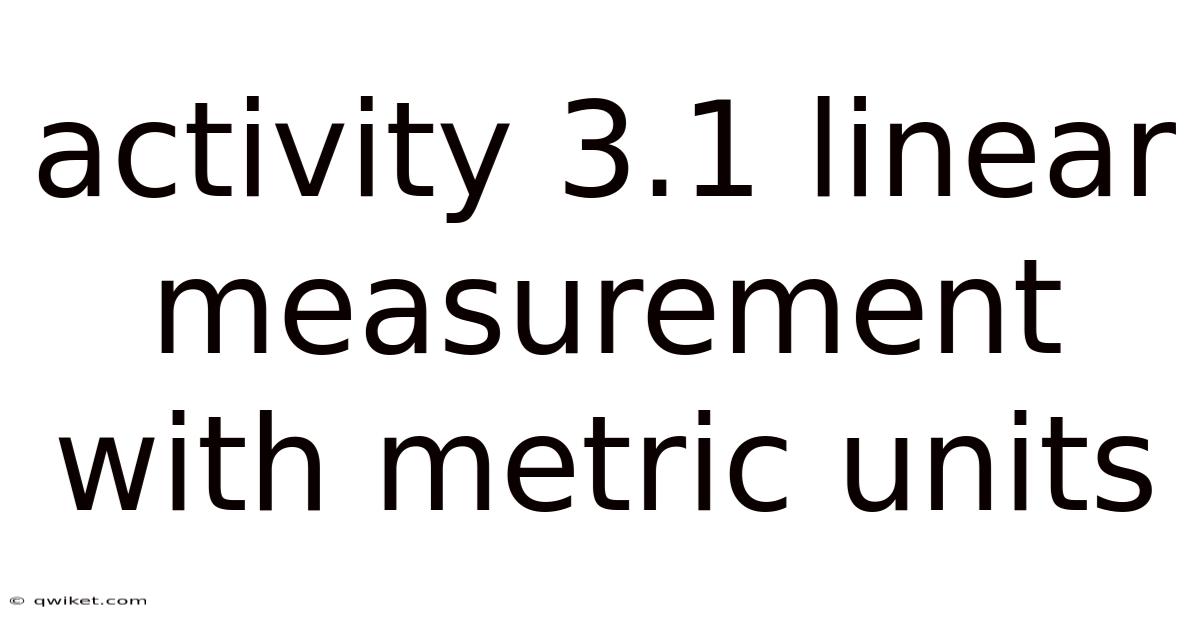 Linear measurement is the foundation of geometry, engineering, and everyday life. Worth adding: in Activity 3. 1, students practice measuring straight lengths using the metric system, reinforcing concepts of units, conversions, and precision. Below is a comprehensive walkthrough that covers the purpose of the activity, required materials, detailed steps, scientific reasoning, common questions, and a concluding reflection that ties the lesson back to real‑world applications Small thing, real impact..
