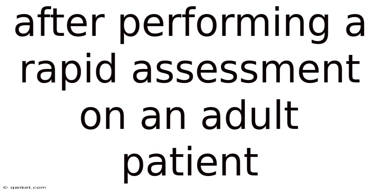 A rapid assessment on an adult patient is a focused, time-sensitive evaluation of airway, breathing, circulation, disability, and exposure, often framed by the ABCDE approach. Because of that, after performing a rapid assessment on an adult patient, the purpose shifts from detection to stabilization, monitoring, and transition. It identifies immediate threats and sets priorities. This stage integrates clinical judgment with teamwork, ensuring that threats are controlled while resources align with needs Surprisingly effective..