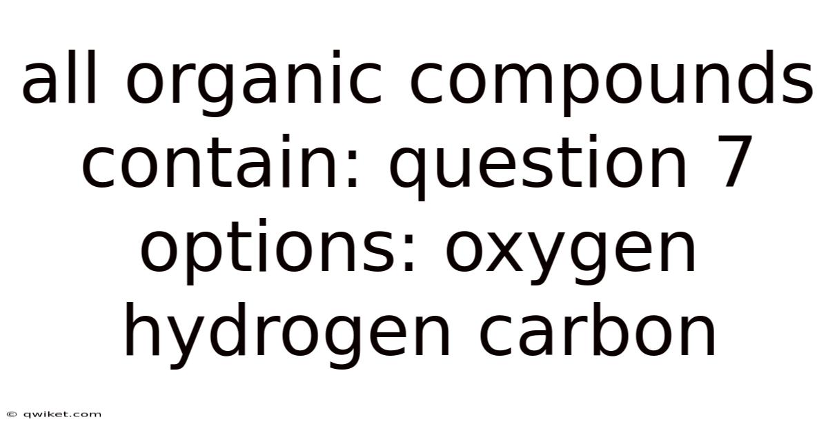 All Organic Compounds Contain: Question 7 Options: Oxygen Hydrogen Carbon