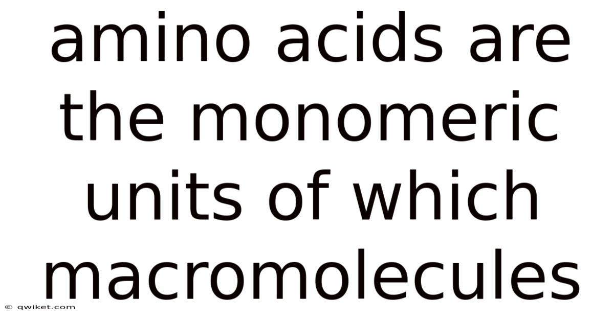 Amino Acids Are The Monomeric Units Of Which Macromolecules