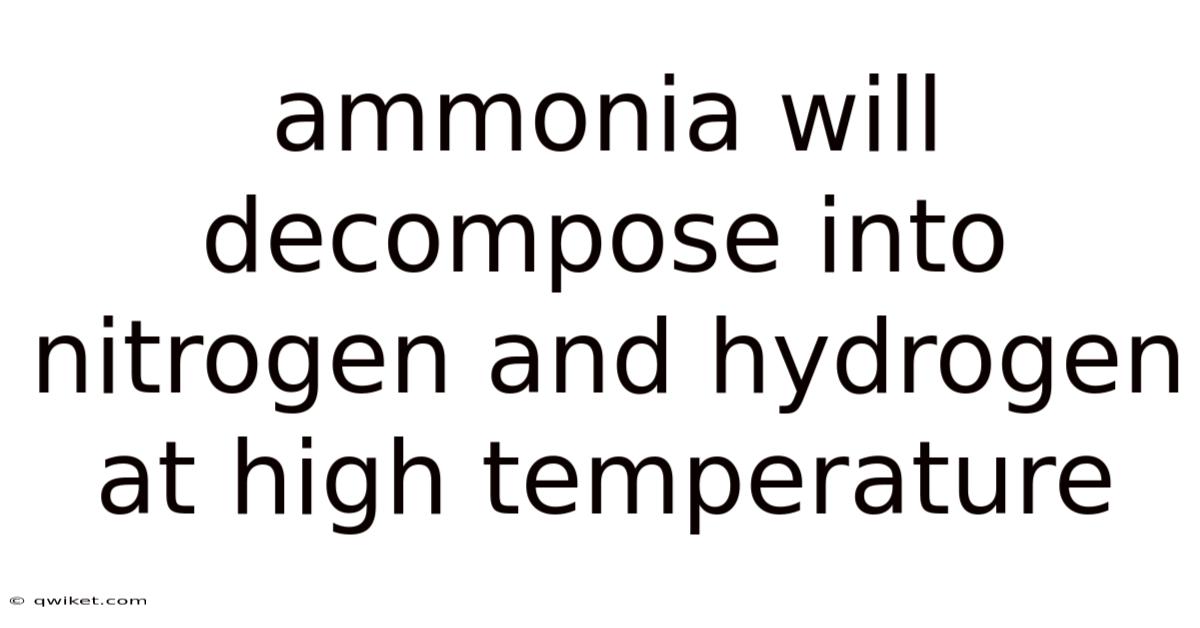 Ammonia (NH₃) is a cornerstone chemical in industry, agriculture, and emerging clean‑energy systems. When heated to sufficiently high temperatures, ammonia spontaneously decomposes into its elemental gases—nitrogen (N₂) and hydrogen (H₂)—according to the simple stoichiometric equation: