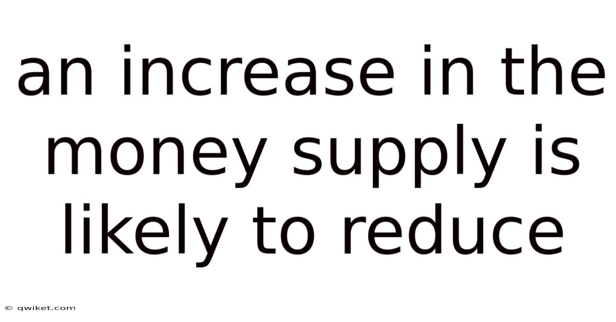 An Increase in the Money Supply Is Likely to Reduce Interest Rates and Stimulate Economic Activity