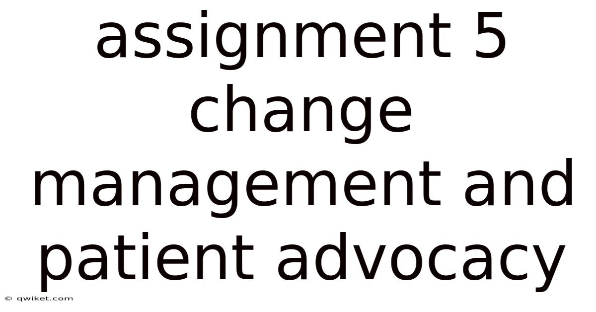 In the fast‑evolving landscape of health‑care, change management and patient advocacy are inseparable pillars that determine whether new initiatives truly improve outcomes. Assignment 5 asks students to explore how systematic change processes can be aligned with the ethical duty to champion patients’ rights, preferences, and safety. This article unpacks the core concepts, outlines a step‑by‑step framework for managing change in clinical settings, highlights the scientific and ethical foundations of patient advocacy, and provides practical tools that students can apply to their own projects It's one of those things that adds up. Simple as that..