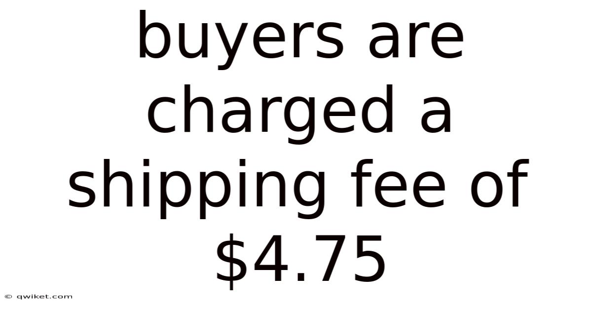 The short version: the statement that buyers are charged a shipping fee of $4.Because of that, 75 is more than a simple line item; it encapsulates a complex interplay of logistics, psychology, and market strategy. Consider this: by dissecting how such fees are calculated, recognizing their emotional impact, and employing practical tactics to lessen their effect, consumers can manage the checkout process with confidence. That's why retailers, on the other hand, benefit from transparent communication and thoughtful fee design, fostering loyalty and encouraging repeat business. Whether you are a seasoned online shopper or a newcomer, understanding the rationale behind that $4.75 charge empowers you to make informed purchasing decisions and get the most value out of every transaction And that's really what it comes down to..