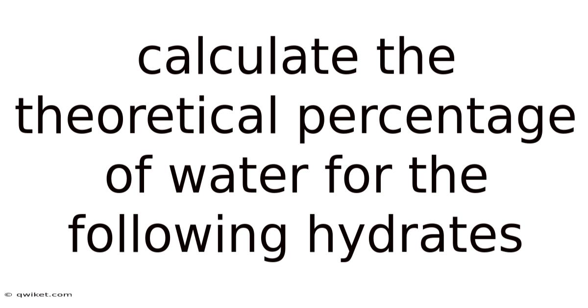 The detailed dance between minerals, nutrients, and environmental factors shapes the very foundation of ecosystems on Earth. In real terms, within this dynamic interplay lies a concept that often remains shrouded in complexity: the calculation of theoretical water content within hydrates. Hydrates, those crystalline compounds formed when water molecules adhere to a lattice structure surrounding a central ion or molecule, serve as silent custodians of hydration essential for biological processes, industrial applications, and geological formations. Also, yet, determining the precise percentage of water bound within these structures demands precision, blending chemistry, mathematics, and application-specific knowledge. Because of that, whether addressing agricultural yields, pharmaceutical formulations, or mineral extraction processes, understanding this metric becomes a cornerstone for optimizing efficiency and sustainability. Plus, in this context, the task of calculating theoretical water percentages transcends mere numerical computation; it represents a bridge between abstract theory and practical implementation, requiring a nuanced grasp of both scientific principles and contextual relevance. This article walks through the multifaceted nature of hydrate analysis, offering insights into methodologies, case studies, and real-world implications while emphasizing the importance of accuracy in deriving actionable results. Through rigorous exploration, we uncover how the interplay of variables—such as crystal lattice stability, molecular interactions, and environmental conditions—shapes outcomes that define the efficacy of hydrates in their respective domains.