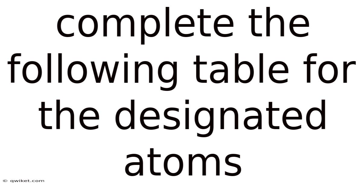 Complete The Following Table For The Designated Atoms