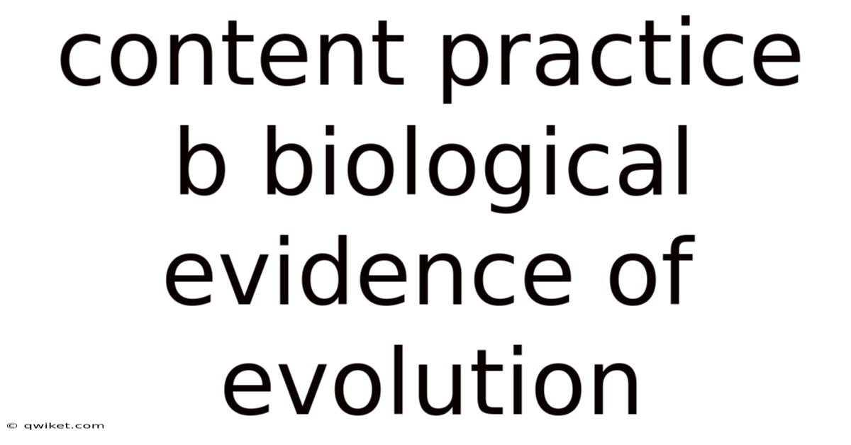 The biological evidence of evolution is multifaceted, spanning fossils, anatomy, embryology, and molecular biology. That's why by studying these interconnected lines of evidence, students not only grasp the mechanics of evolution but also appreciate the rigor and creativity of scientific inquiry. Content Practice B thus equips learners with the analytical tools to evaluate data, construct evolutionary narratives, and understand the profound unity of life on Earth. When all is said and done, the power of evolutionary theory lies not in a single, isolated discovery, but in the overwhelming consensus built from a diverse and constantly expanding body of knowledge. As scientists continue to refine techniques and uncover new data – from analyzing ancient DNA to exploring the complexities of gene regulation – our understanding of life’s history will undoubtedly deepen, solidifying evolution as the cornerstone of modern biology and a testament to the dynamic and interconnected nature of the natural world.