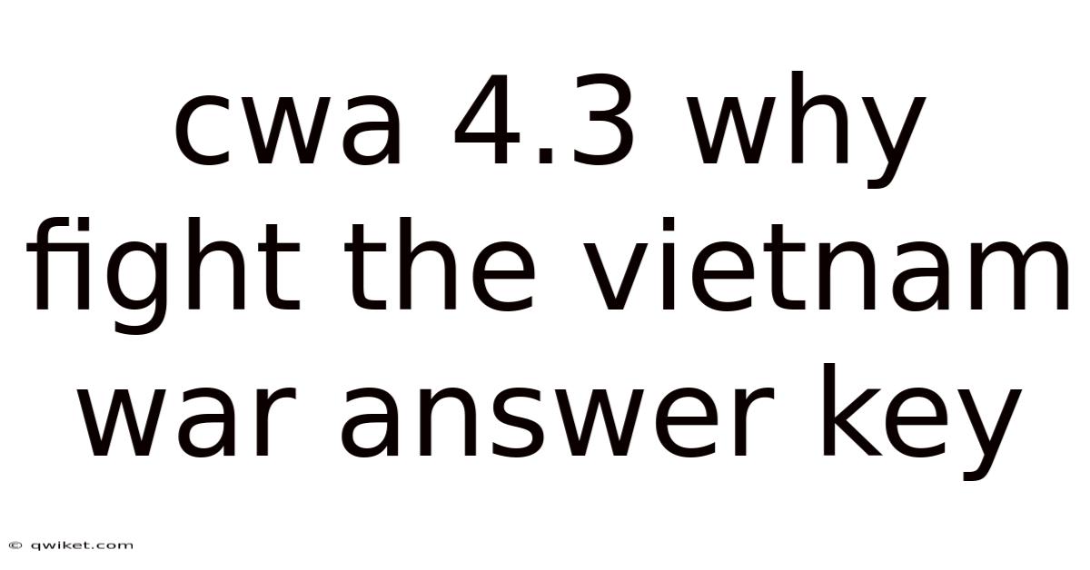The question of why the United States fought in the Vietnam War has been a subject of intense debate, historical analysis, and political reflection for decades. For students and scholars alike, understanding the motivations behind U.Practically speaking, s. involvement in Vietnam is critical to grasping the complexities of Cold War geopolitics, military strategy, and domestic policy. CWA 4.And 3, a specific educational module or question set, likely seeks to explore these reasons through a structured framework. This article breaks down the key arguments and evidence that explain the U.S. Day to day, decision to engage in the Vietnam War, providing a clear and detailed answer key to CWA 4. 3.