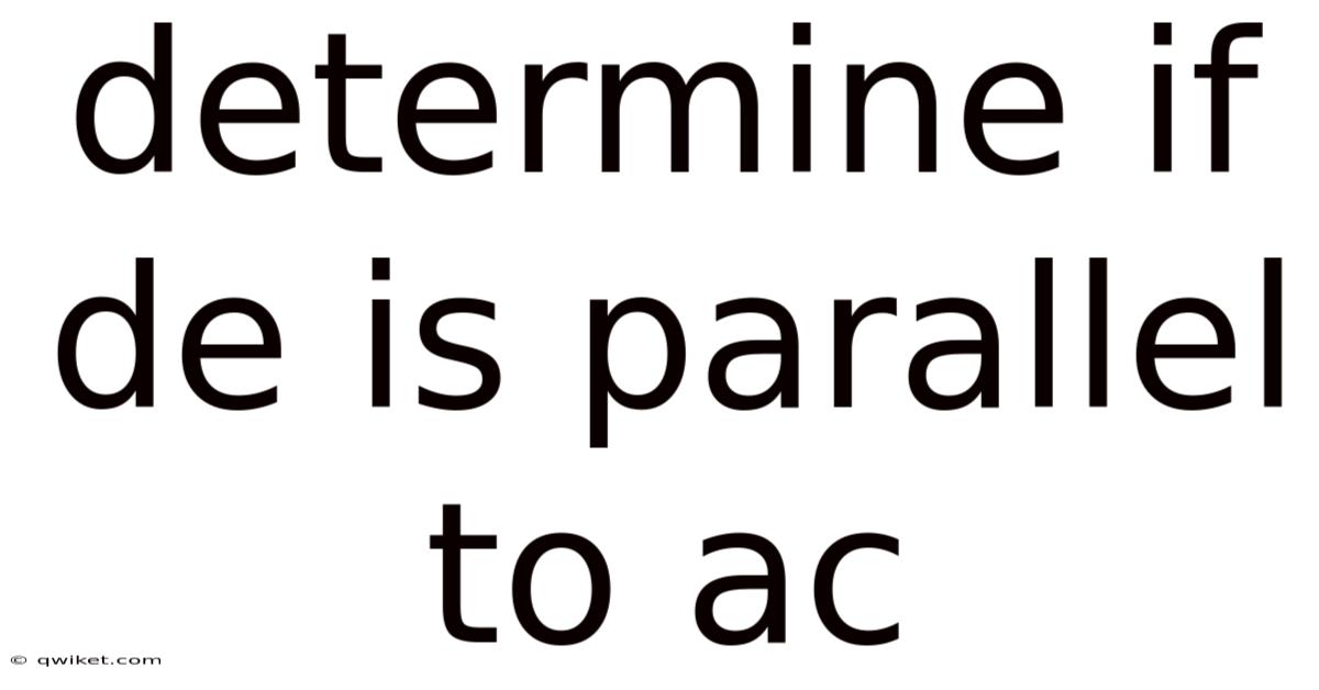 When working with triangles, quadrilaterals, or more complex geometric figures, a frequent question is whether a given segment DE is parallel to another segment AC. Determining parallelism is not only a fundamental skill for solving textbook problems, but it also underpins many real‑world applications such as engineering design, computer graphics, and architectural drafting. This article walks you through a systematic approach to decide if DE ∥ AC, covering the necessary theorems, algebraic methods, and visual strategies. By the end, you will be able to assess parallelism confidently, whether the figure is presented on paper, in a dynamic geometry software, or as a set of coordinates.