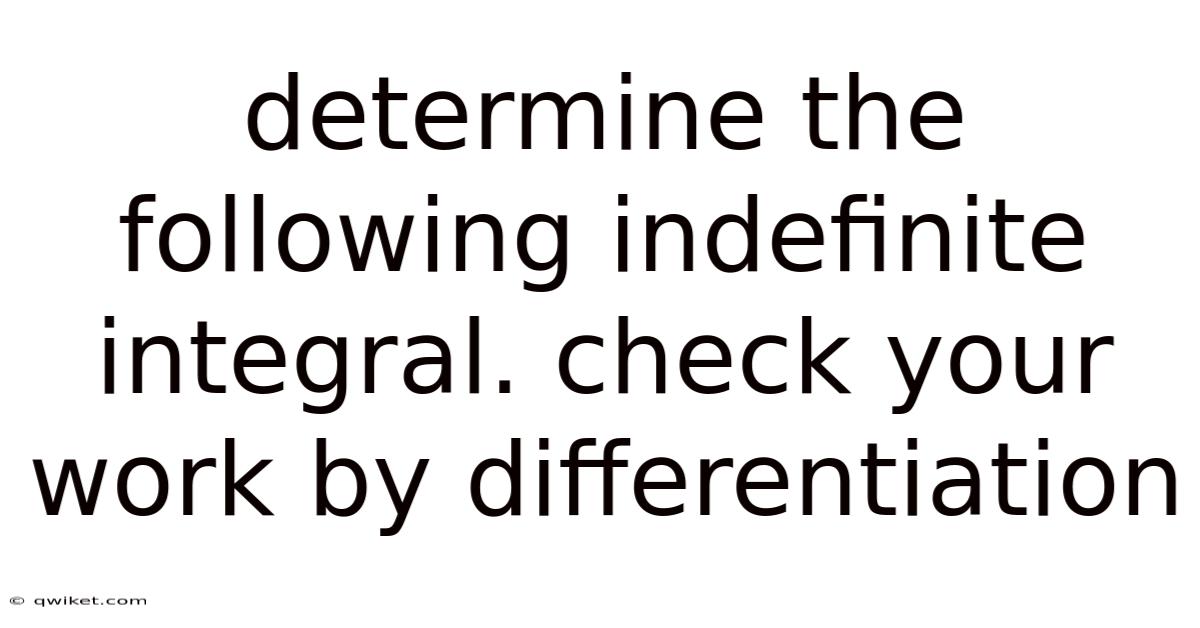 Determine The Following Indefinite Integral. Check Your Work By Differentiation