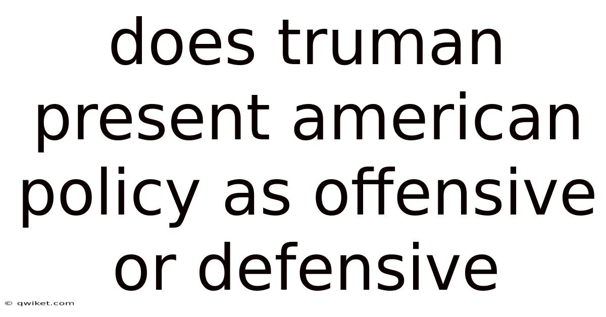 President Harry S. In practice, s. actions as protective responses to instability, yet he also accepted that maintaining peace required forward-leaning commitments. Practically speaking, truman shaped post-1945 international relations by articulating a vision in which American power served to contain threats rather than conquer territory. Truman consistently cast U.On the flip side, when historians and students ask does Truman present American policy as offensive or defensive, the answer emerges from how he framed security, economics, and ideology after World War II. This balance made his policy defensive in stated purpose while expansive in practice.