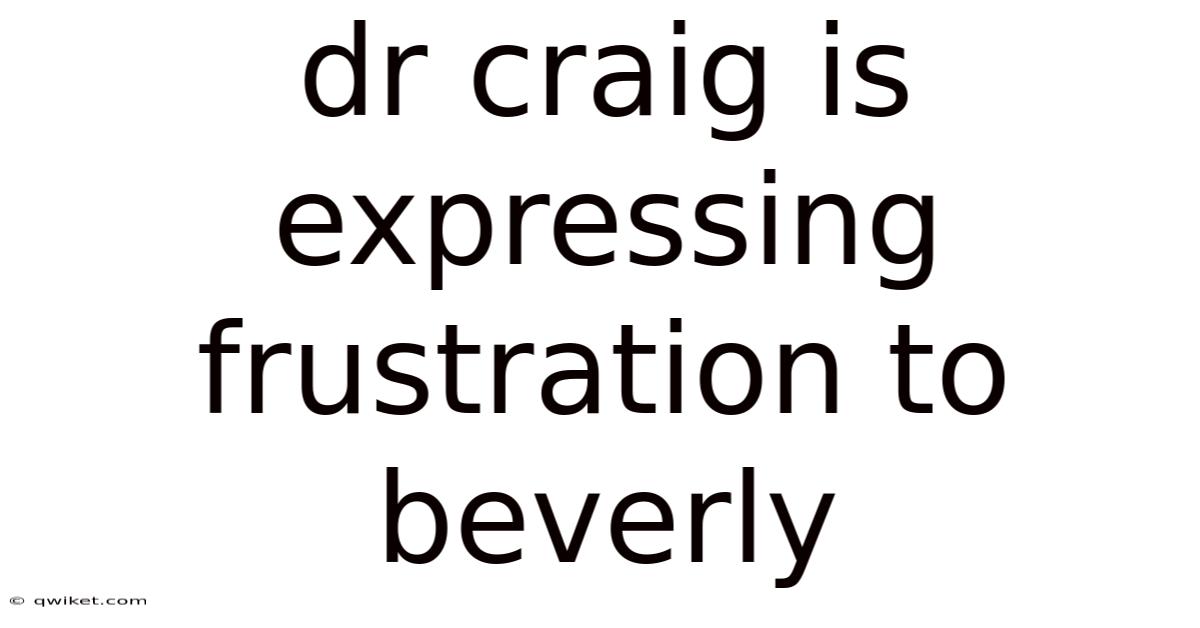 Dr. Craig, likely a medical professional, academic, or industry expert, may feel burdened by the demands of his role. Beverly, perhaps a colleague, subordinate, or collaborator, could be perceived as a barrier to progress. Still, the frustration might be triggered by specific incidents, such as missed deadlines, unmet targets, or a failure to address critical issues. In real terms, for instance, if Beverly consistently overlooks Dr. Craig’s input during decision-making processes, it could grow a sense of disrespect or undervaluation.
