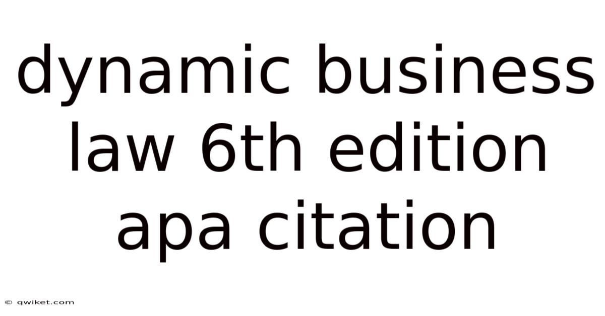 Accurate citation is the cornerstone of academic integrity and effective scholarly communication. Knowing precisely how to cite its sixth edition according to the American Psychological Association (APA) style is a critical skill. In real terms, for students and professionals in business, law, and related fields, the textbook Dynamic Business Law is a foundational resource. This guide provides a comprehensive, step-by-step breakdown of creating flawless APA citations for this specific text, clarifying common points of confusion between the textbook’s edition and the APA manual’s edition, and ensuring your references meet the highest academic standards Worth keeping that in mind. Still holds up..