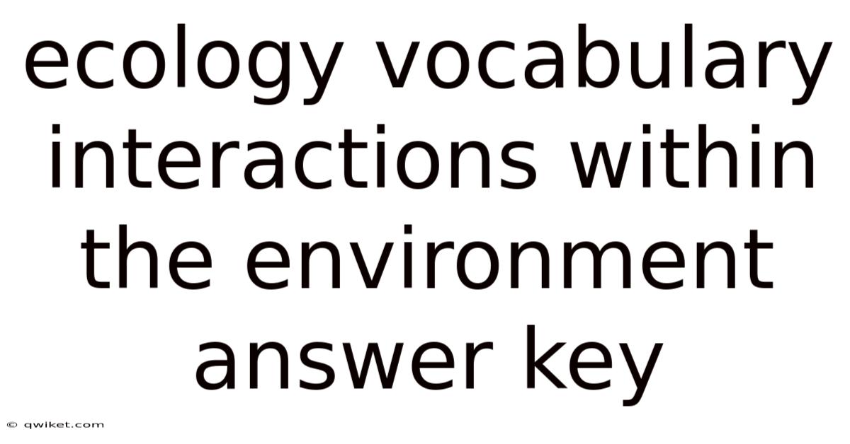 Ecology is the study of how living organisms interact with each other and their environment. Understanding the vocabulary related to these interactions is crucial for grasping the complex relationships that sustain life on Earth. This article will explore key ecological terms and concepts, providing a comprehensive answer key to help you deal with the involved world of ecology That's the part that actually makes a difference. Worth knowing..