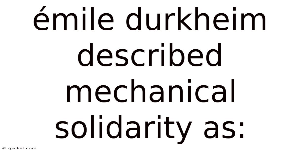 Émile Durkheim Described Mechanical Solidarity As: