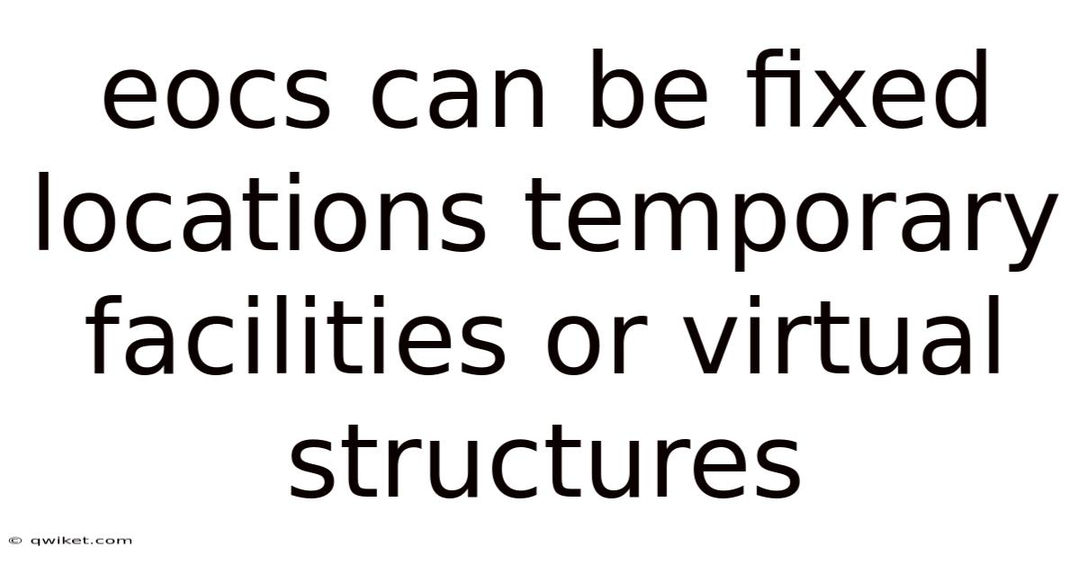 The concept of an EOC—Emergency Operations Center—often conjures images of a fortified building bustling with officials during a crisis. But whether managing a natural disaster, a public health emergency, or a corporate crisis, the ability to deploy the right operational hub—be it a permanent command center, a pop-up tent city, or a cloud-based digital environment—is essential for effective coordination, resource management, and decision-making. This flexibility is not merely a convenience but a critical adaptation to a complex, unpredictable world. EOC facilities can be fixed locations, temporary facilities, or virtual structures, each serving a distinct purpose in the architecture of emergency management and organizational continuity. Even so, the modern understanding of an EOC has evolved significantly beyond this singular archetype. Understanding the nuances, advantages, and challenges of these three primary forms is fundamental for any organization serious about resilience and dependable incident response Simple as that..