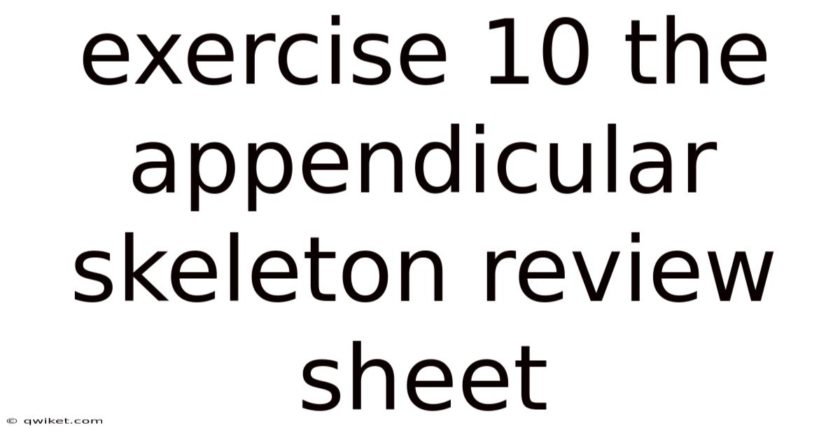 The appendicular skeleton forms the framework formovement and interaction with the environment. Practically speaking, this critical component of the human skeletal system, detailed in Exercise 10 of your anatomy review, comprises the bones of the limbs and the girdles that attach them to the axial skeleton. Day to day, understanding this structure is fundamental to grasping human locomotion, biomechanics, and overall anatomy. This review sheet will guide you through identifying key bones, their functions, and their relationships within the appendicular system And that's really what it comes down to..