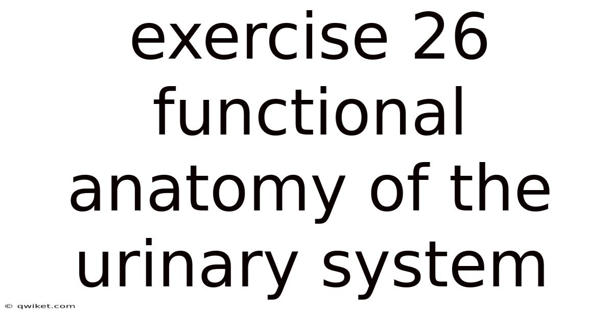 The urinary system represents one of the body's most vital organ systems, responsible for maintaining homeostasis through the precise regulation of fluid balance, electrolyte concentrations, and waste elimination. Also, understanding the functional anatomy of the urinary system is essential for students studying anatomy, physiology, and related health sciences. Exercise 26 provides a comprehensive exploration of this remarkable system, examining each component's structural features and their direct correlation to physiological function. This article digs into the complex details of the urinary system's anatomy, its physiological roles, and the clinical significance of understanding these structures Small thing, real impact. Surprisingly effective..