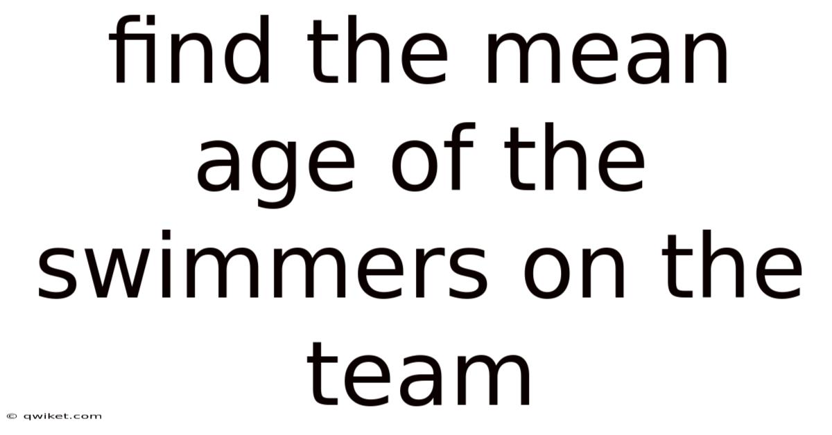 The mean, often referred to as the average, is a measure of central location within a dataset. That said, the mean is sensitive to extreme values, or outliers, which can skew the result. Plus, to find the mean age of the swimmers on the team, you are essentially seeking the balancing point of all ages. Which means, the context of the data is as important as the calculation itself. That said, it is crucial to distinguish between the mean, median, and mode, as each offers different insights. Take this case: if the team includes a veteran coach or a very young prodigy, the mean age might not reflect the age of the "typical" swimmer. This metric is widely used because it is straightforward to calculate and provides a quick snapshot of the group's demographic profile. This article will guide you through the necessary steps to ensure accuracy and relevance in your analysis Most people skip this — try not to..
