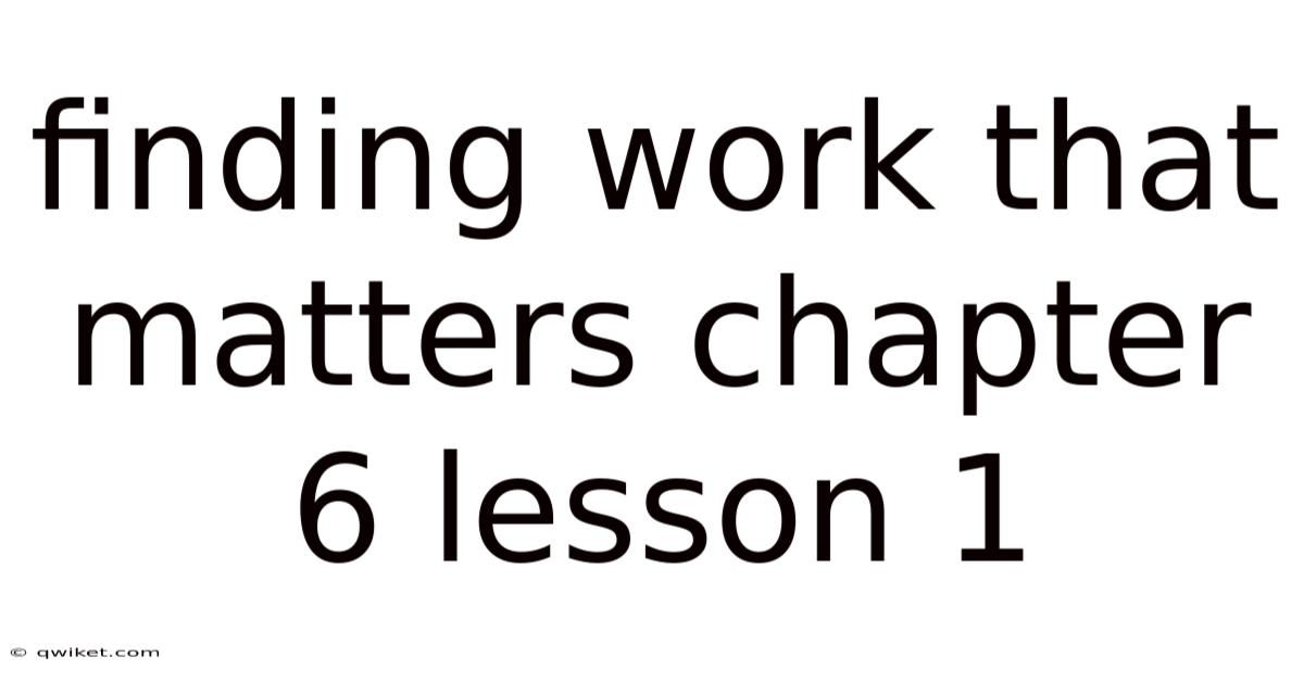 Finding Work That Matters Chapter 6 Lesson 1