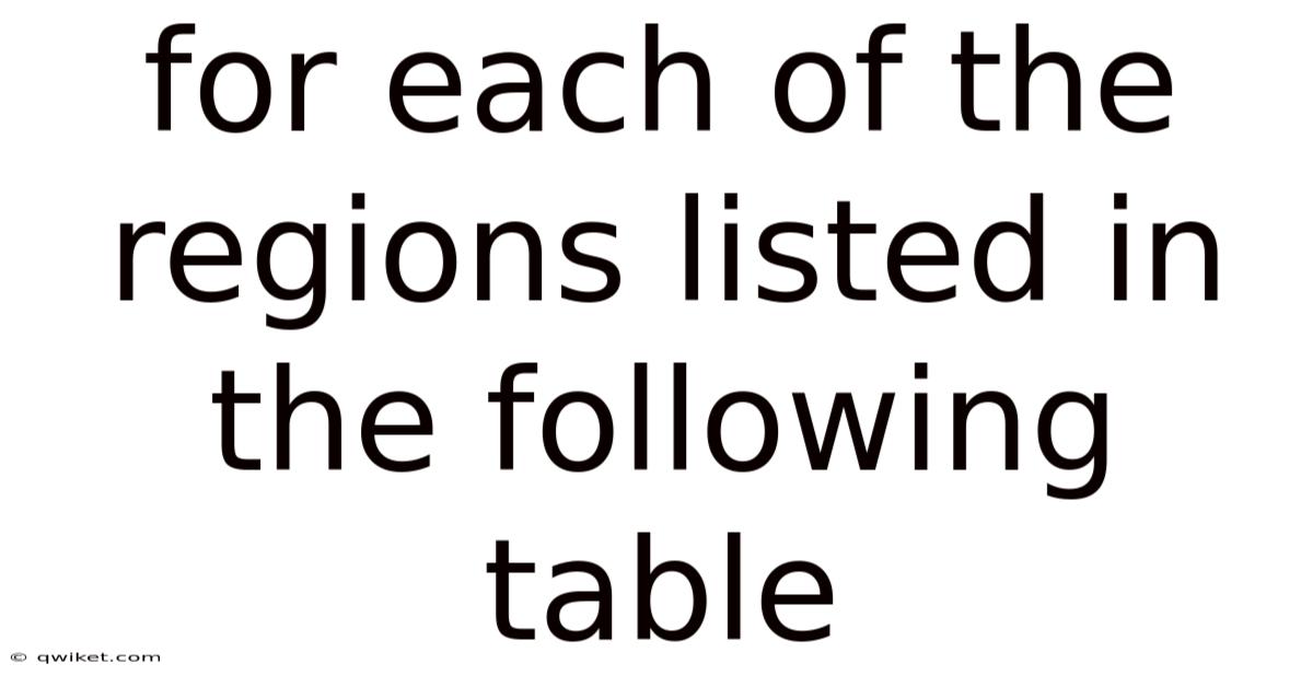 - Provide the complete table containing all regions to be analyzed in the article.