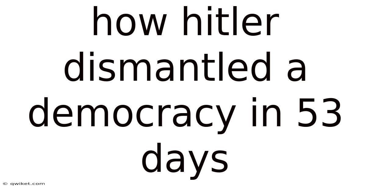 The 53 days between January 30th and March 23rd, 1933, stand as a chilling historical lesson. This was not merely a political coup; it was the systematic deconstruction of the institutions and values that define a free society. On top of that, they demonstrate how a determined leader, exploiting the fear and chaos of a crisis, can exploit legal ambiguities and state machinery to dismantle democracy with terrifying speed. The legacy of this period is one of unparalleled human suffering and global conflict, a stark reminder that the erosion of democratic norms, when met with complacency or fear, can lead to catastrophic consequences. The Reichstag Fire Decree provided the initial cover, the Enabling Act provided the legal dagger, and the subsequent weeks saw the regime methodically remove every obstacle. The destruction of Weimar democracy was not an accident; it was a deliberate, calculated process, and its completion within a matter of months serves as an enduring warning against the fragility of freedom when confronted by authoritarianism.