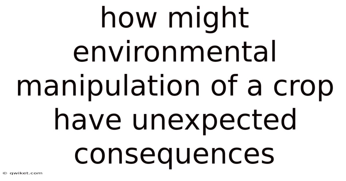 Environmental manipulation of crops has become a cornerstone of modern agriculture, driven by the urgent need to feed a growing global population while mitigating the impacts of climate change. Because of that, techniques such as genetic modification, agrochemical use, and precision farming aim to boost yields, enhance resilience, and reduce resource consumption. Even so, these interventions often come with a shadow side: unintended consequences that ripple through ecosystems, economies, and human health. In practice, while the goals of these manipulations are noble, their ripple effects can be complex, unpredictable, and sometimes irreversible. This article explores the potential pitfalls of altering crops in controlled environments, highlighting the delicate balance between innovation and ecological responsibility And that's really what it comes down to. Turns out it matters..
