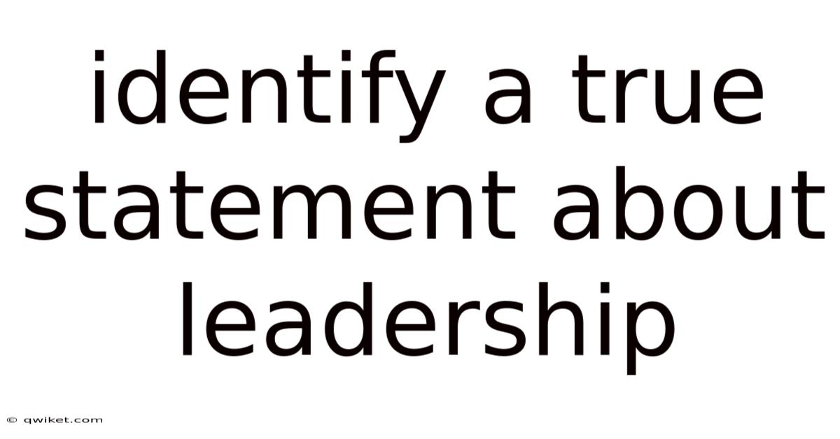 A true statement about leadership is not merely a slogan or a vague claim; it is a reflection of principles, actions, and values that genuinely influence and inspire others. Leadership, at its core, involves guiding individuals or groups toward a shared goal while fostering trust, accountability, and growth. A true statement about leadership must align with these foundational elements, distinguishing it from superficial or misleading assertions. Now, for instance, a statement like “A leader is someone who takes charge” might seem accurate at first glance, but it lacks depth. A more authentic statement would make clear qualities such as empathy, vision, or ethical responsibility, which are critical to effective leadership Surprisingly effective..