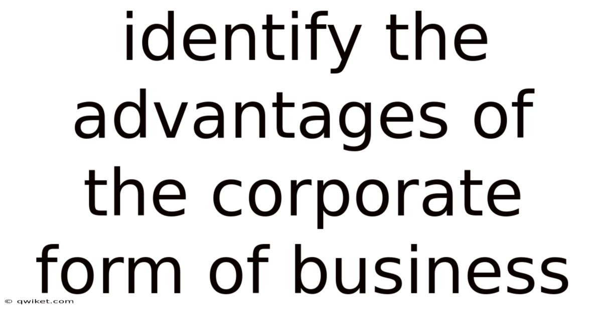 Key Advantages of the Corporate Form of Business