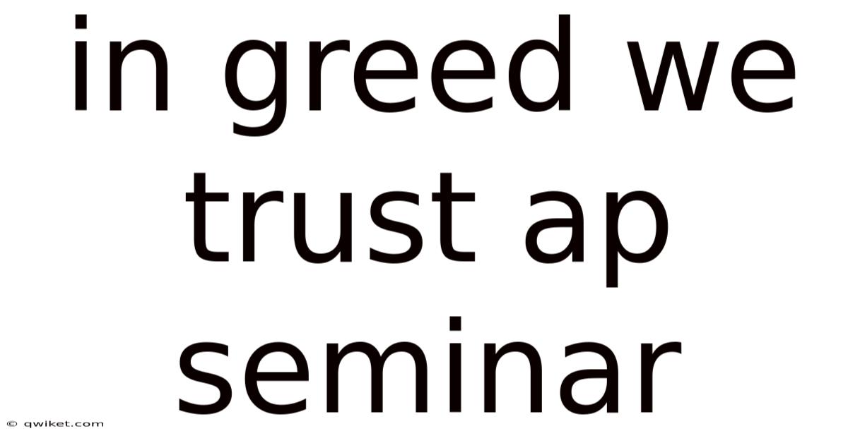 By constantly refining these questions and rigorously seeking evidence from diverse perspectives, the AP Seminar student transcends simplistic narratives. They learn that "In Greed We Trust" is not just a catchy critique, but a complex phenomenon embedded within our economic, political, and social fabric. Understanding its nuances is the first step towards contributing to solutions that are both effective and equitable Surprisingly effective..