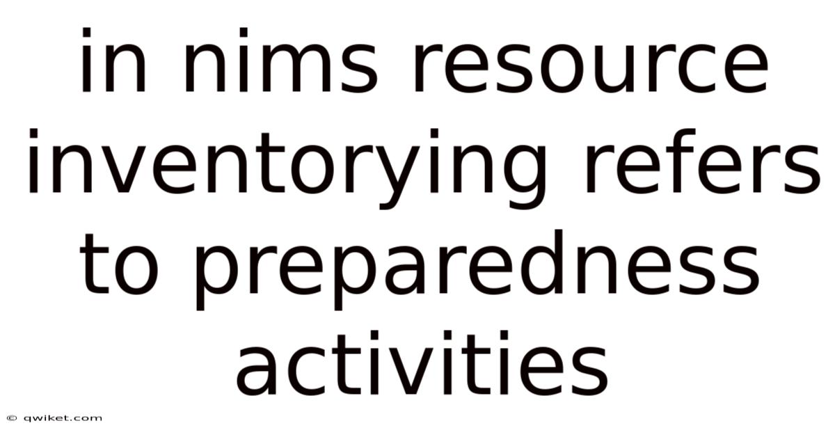 NIMS Resource Inventorying Refers to Preparedness Activities: A Critical Component of Emergency Management