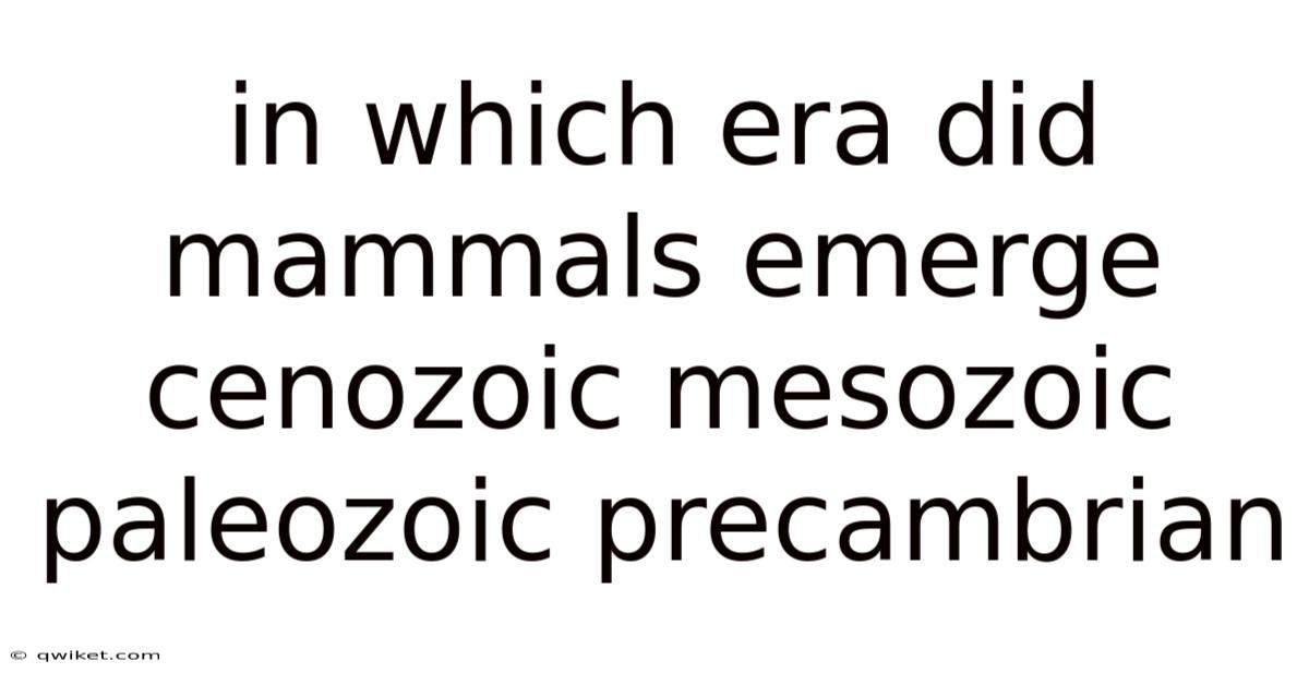 In Which Era Did Mammals Emerge Cenozoic Mesozoic Paleozoic Precambrian