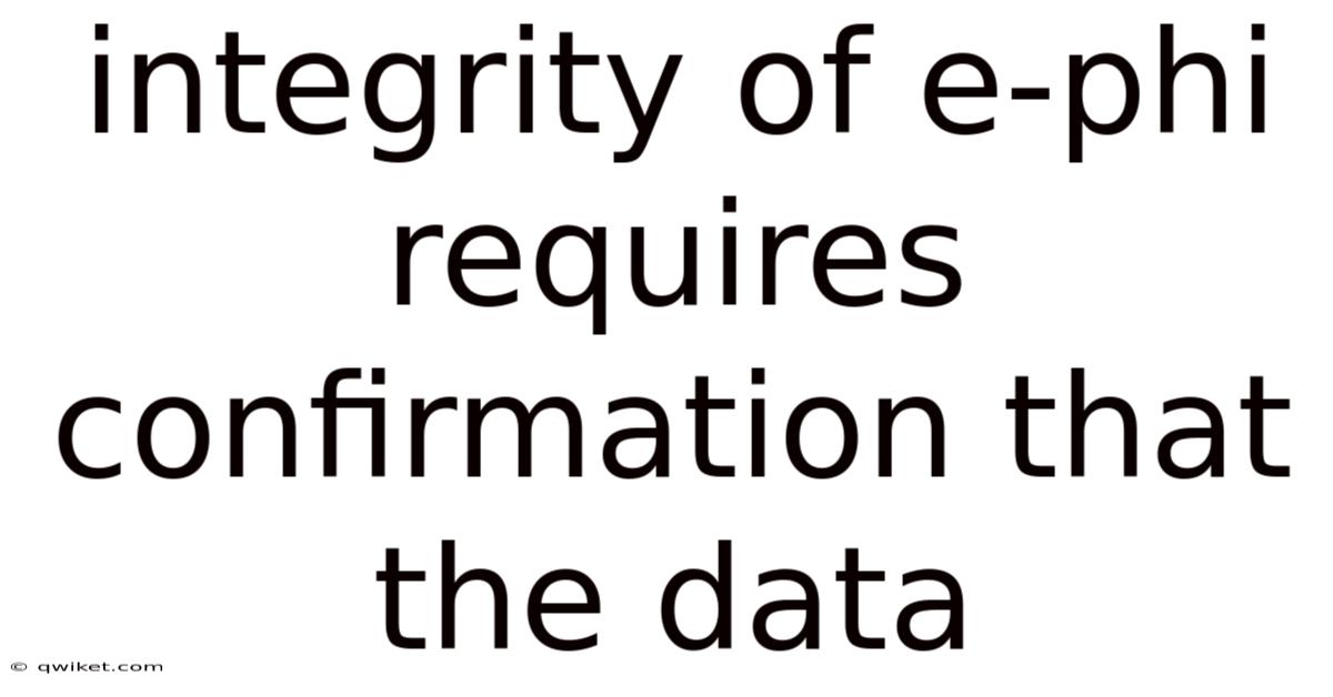 Integrity of ePHI Requires Confirmation That the Data Is Accurate, Unaltered, and Reliable