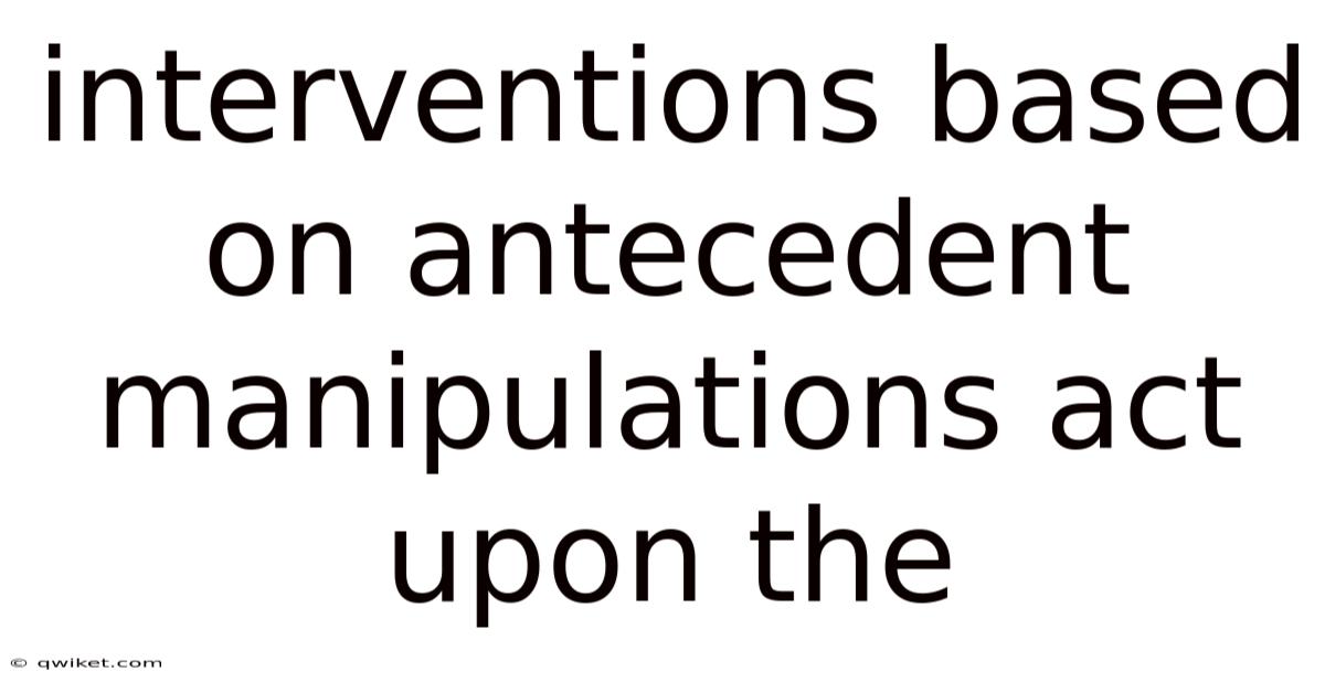 interventions based on antecedent manipulations actupon the behavioral context to arrange conditions that make the desired response more likely while reducing the need for reactive consequences. That said, in applied behavior analysis (ABA) and related educational frameworks, antecedent manipulations refer to systematic changes in the environment, task demands, or instructional cues that precede a target behavior. In real terms, by shaping these antecedents, practitioners can prevent problem behaviors, prompt appropriate responses, and make easier skill acquisition without relying heavily on post‑event punishments or prompts that may lose effectiveness over time. This article explores the theoretical underpinnings, practical strategies, and evidence‑based outcomes of interventions that center on antecedent manipulation, offering a practical guide for educators, clinicians, and caregivers seeking to develop positive behavior change.
