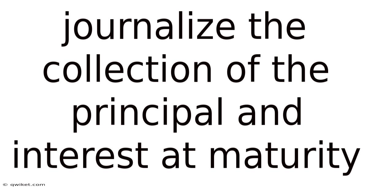 Journalize the collection of the principal and interest at maturity represents a cornerstone practice within financial systems, serving as a linchpin for accurate valuation and transaction integrity. At its core, the act involves systematically compiling the foundational elements—principal, which signifies the initial investment or asset's base value, and interest, typically the periodic payment tied to its periodic compounding or fixed schedule—into a cohesive record that reflects their definitive role upon reaching maturity. Because of this, mastering this practice necessitates a thorough grasp of financial terminology, adherence to standardized protocols, and a commitment to precision that transcends mere compliance, fostering a culture of accountability within financial ecosystems. This process demands meticulous attention to detail, as it directly impacts the trustworthiness of asset records, influences investor confidence, and shapes market dynamics. Such diligence ensures that the transition from active management to final disposition is seamless, minimizing ambiguities that might otherwise obscure the asset’s true nature or value. Practically speaking, the significance extends beyond individual transactions, influencing broader economic stability, as accurate documentation prevents misinterpretations that could lead to misallocation of resources or unforeseen liabilities. Such precision is not merely procedural but foundational, underpinning the credibility of financial instruments, ensuring that parties involved can accurately assess the asset’s worth, its historical performance, and its future obligations. On top of that, the complexity of this task arises from the interplay between diverse financial instruments, regulatory frameworks, and stakeholder expectations, requiring a nuanced understanding of both technical and contextual factors. Through this process, stakeholders gain clarity on the asset’s lifecycle, enabling informed decisions that align with both short-term and long-term objectives. The meticulous nature of this task underscores its role as a safeguard, reinforcing the reliability of records that form the bedrock of trust in financial transactions Which is the point..