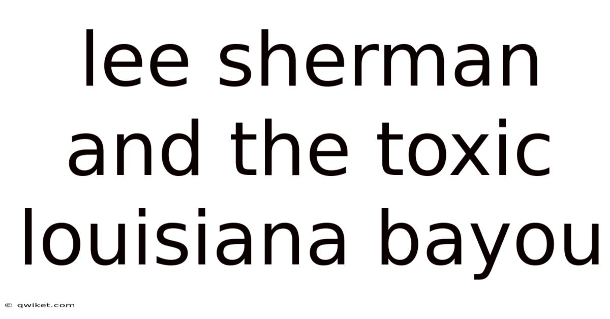 Lee Sherman and the Toxic Louisiana Bayou: A Story of Environmental Injustice