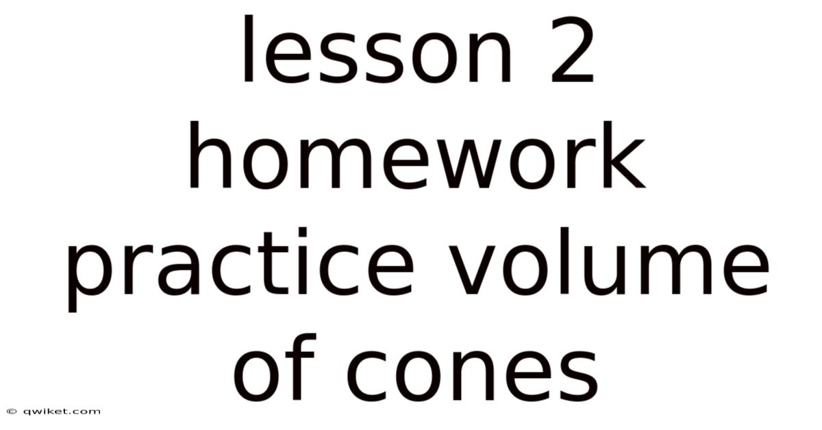 The volume of a cone represents the amount of space enclosed within its circular base and tapering apex. And this unique structure makes calculating its volume distinct. For students tackling Lesson 2 Homework Practice on the volume of cones, mastering this concept is crucial. This article will guide you through understanding that formula, applying it to various problems, and solidifying your grasp through practice. Unlike a cylinder, which has parallel bases, a cone's base is circular and its sides converge to a single point. The standard formula, derived from the relationship between a cone and a cylinder with the same base and height, provides a powerful tool. By the end, you'll not only solve homework exercises but also appreciate the elegance of geometric relationships in everyday objects Took long enough..