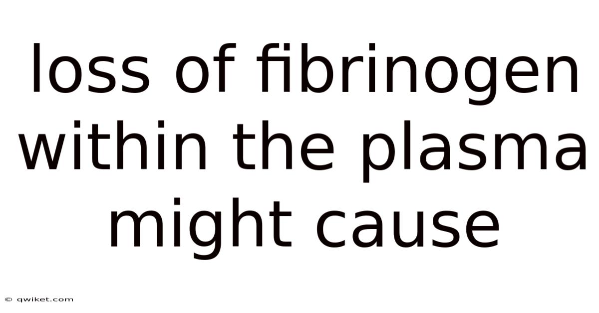 Fibrinogen is a crucial protein found in blood plasma that plays a vital role in the body's clotting mechanism. So when fibrinogen levels drop significantly, the body loses its ability to form stable blood clots, leading to potentially life-threatening conditions. Loss of fibrinogen within the plasma might cause excessive bleeding, delayed wound healing, and increased vulnerability to hemorrhage during surgery or trauma.