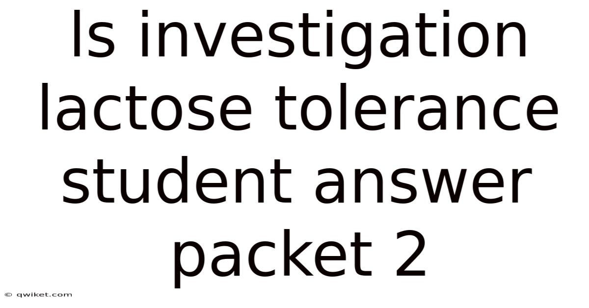 The LS Investigation Lactose Tolerance Student Answer Packet 2 serves as a bridge between abstract genetic concepts and tangible real-world applications. Plus, through careful analysis of enzyme activity data and population patterns, students develop a nuanced understanding of how genetic variation influences physiological responses to dietary components. This investigation exemplifies the power of inquiry-based learning, where students don't just memorize facts but actively construct knowledge through data interpretation and critical thinking Small thing, real impact. No workaround needed..
