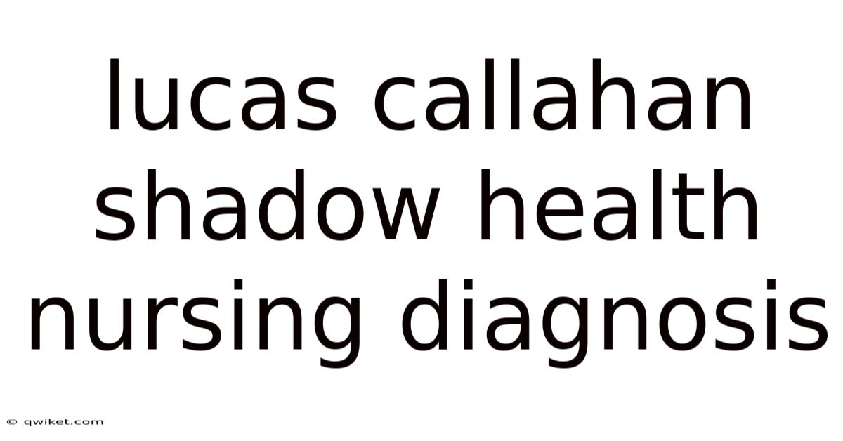 Lucas Callahan Shadow Health Nursing Diagnosis